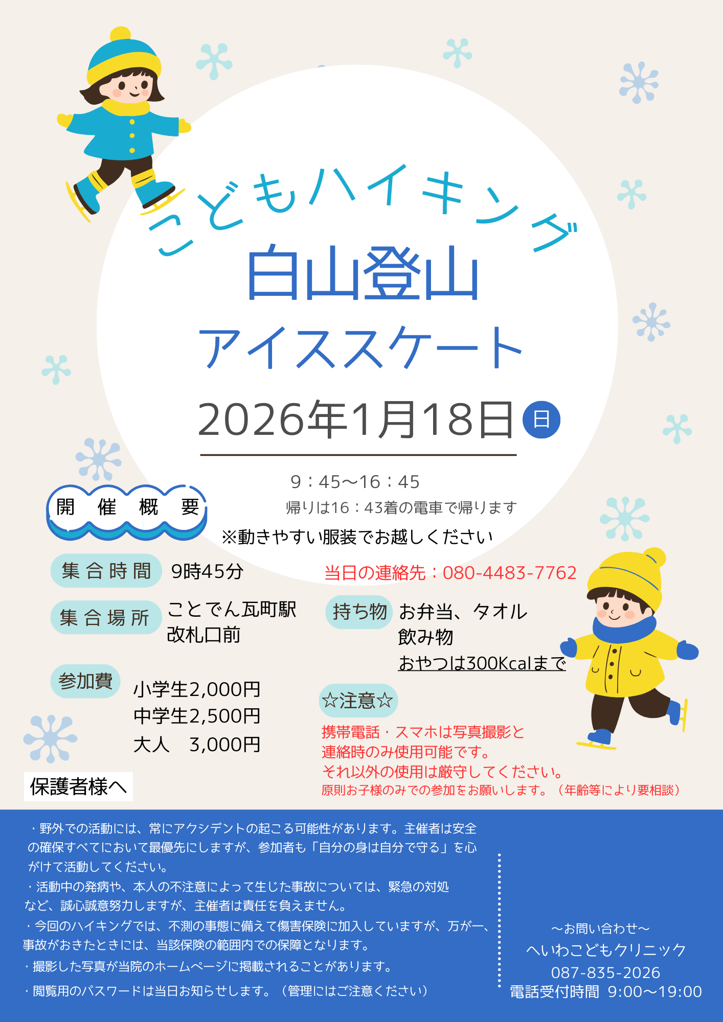 2026年1月 こどもハイキング 2026.01.08 こどもハイキング(PDF) ※撮影した写真が当院のホームページに掲載されることがあります。 ※閲覧用のパスワードは当日お知らせします。 こどもハイキングの参加申し込みフォーム
