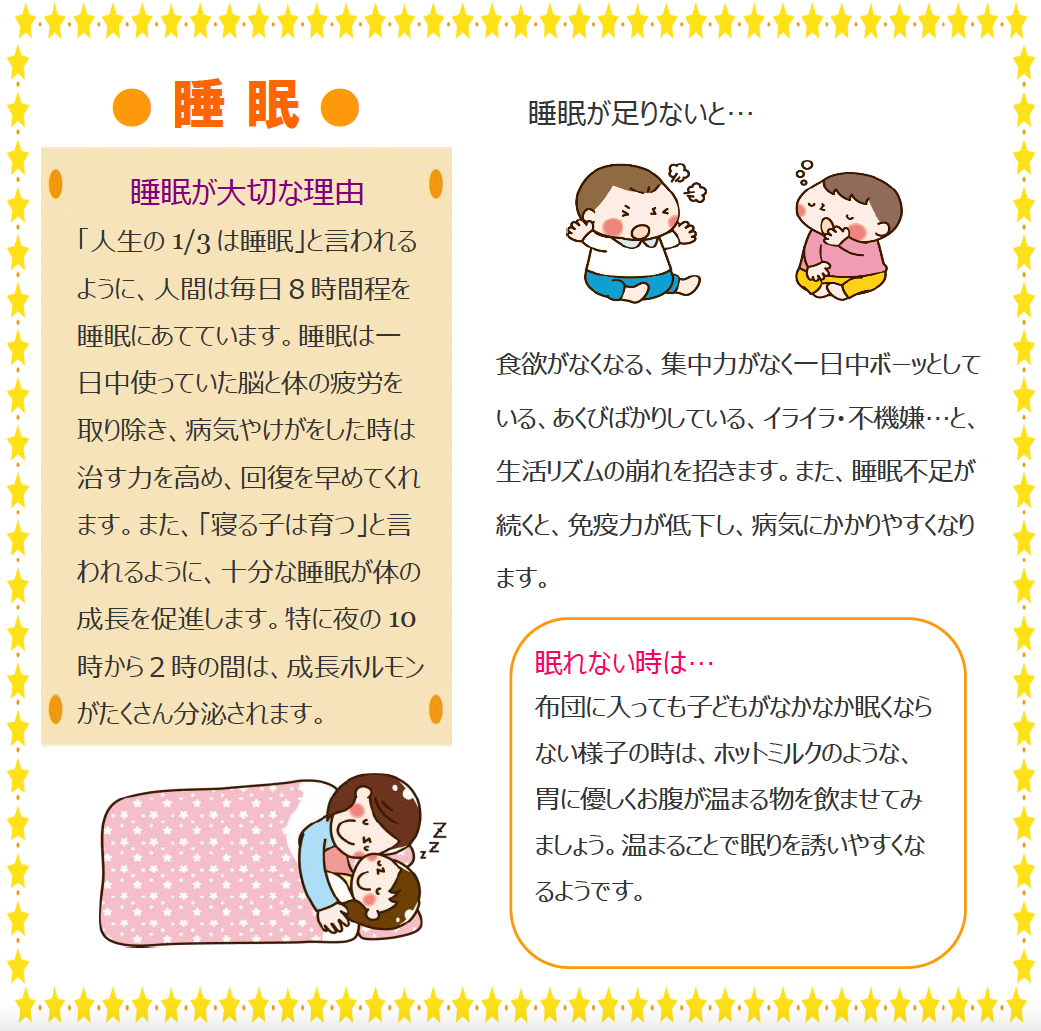 新年度がスタートして、あっという間に1か月がたちました。連休明けは疲れが出やすい時期です。夜はしっかり睡眠をとるようにして、体調の変化を注意深く見ていきましょう。